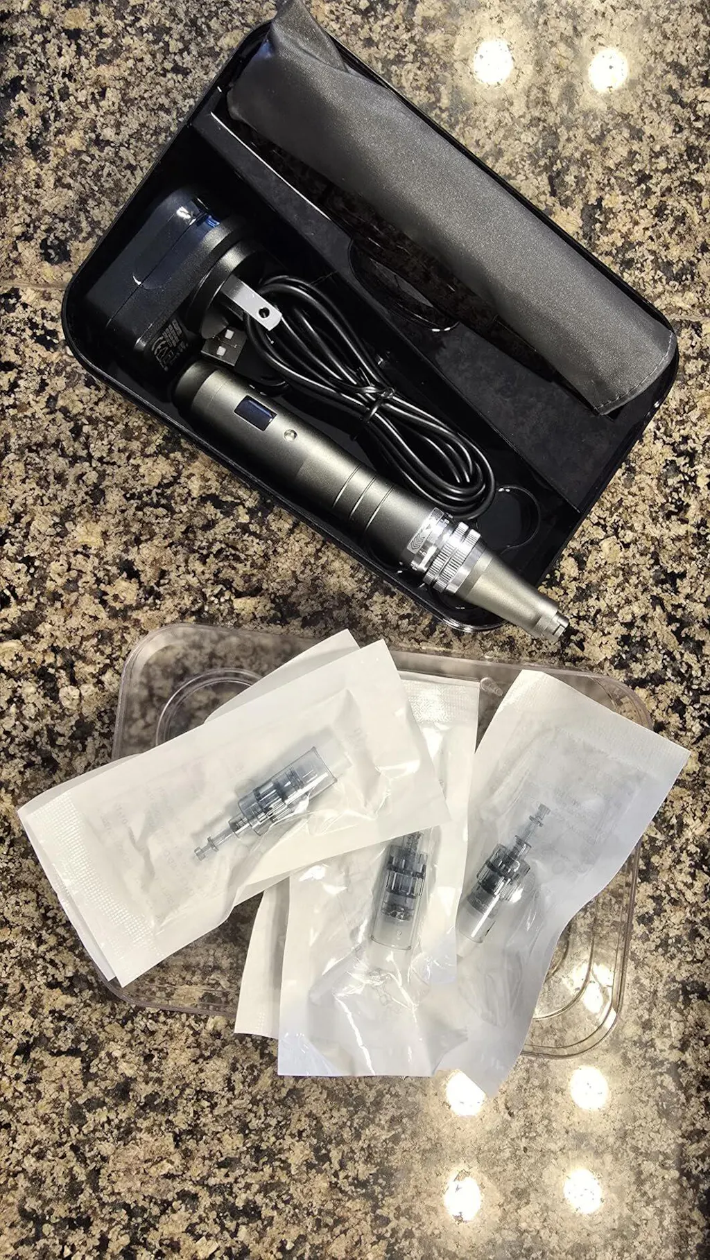 J’utilise le dermapen avec du minoxidil tous les 10 jours, en changeant les cartouches, et après environ un mois et demi, j’ai commencé à voir de nouveaux cheveux apparaître le long de ma ligne capillaire. En même temps, la texture de ma peau s’est énormément améliorée — on dirait presque un soin du visage à domicile.